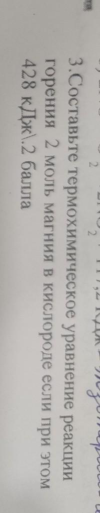 3.Составьте термохимическое уравнение реакции горения 2 моль магния в кислороде если при этом 428 кДж .2 балла