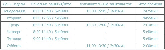 Проект задачи-расчеты таблица: затраты времени на занятия в школе по дням недели, в том числе и на дополнительные занятия в кружках