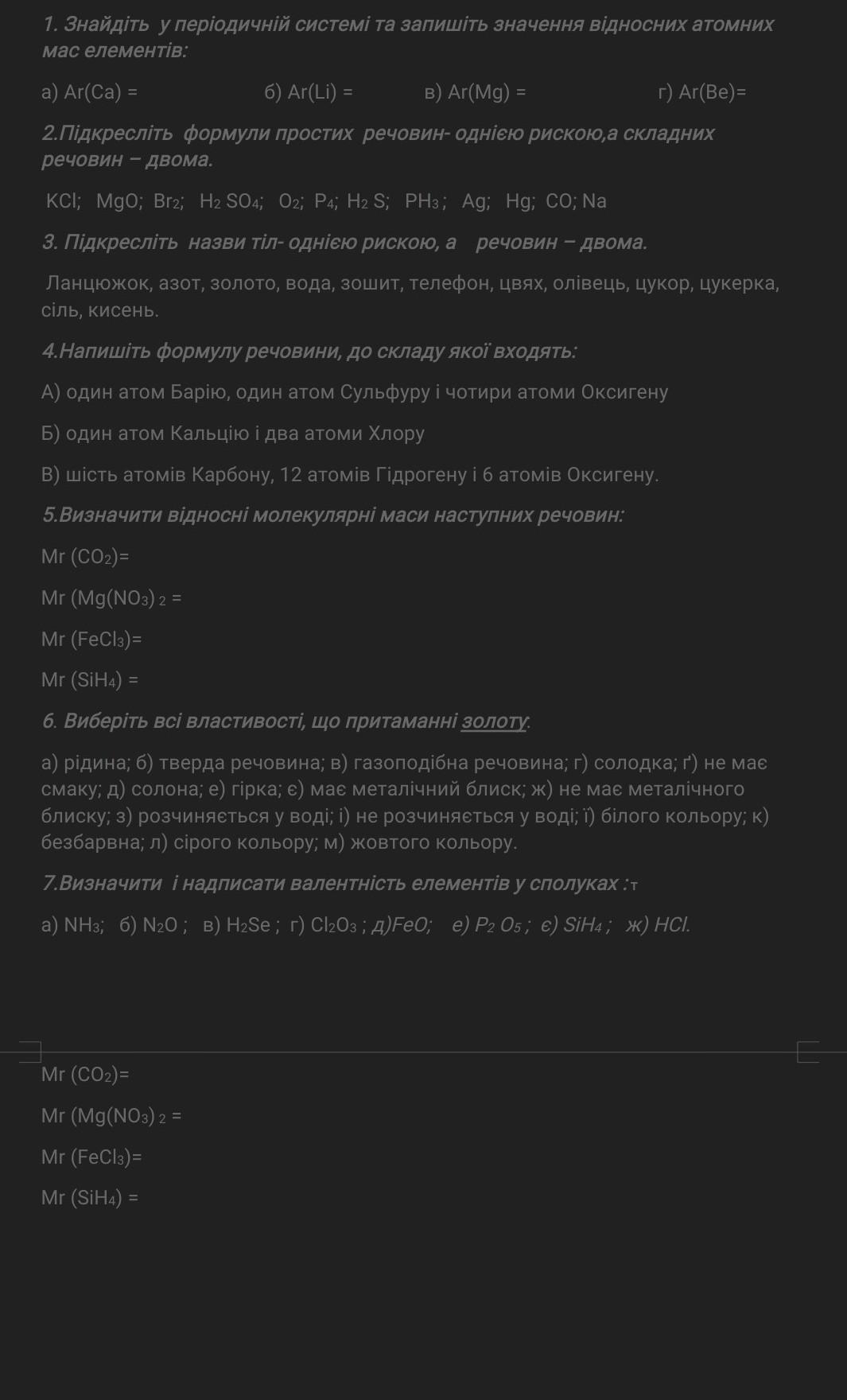Знайдіть у періодичній системі та запишіть значення відносних атомних мас елементів: а) Аr(Са) = б) Ar(Li) = в) Ar(Mg) = г) Ar(Be)=