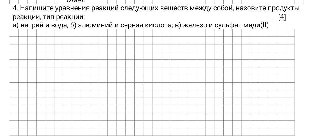 Напишите уравнения реакций следующих веществ между собой, назовите продукты [4]