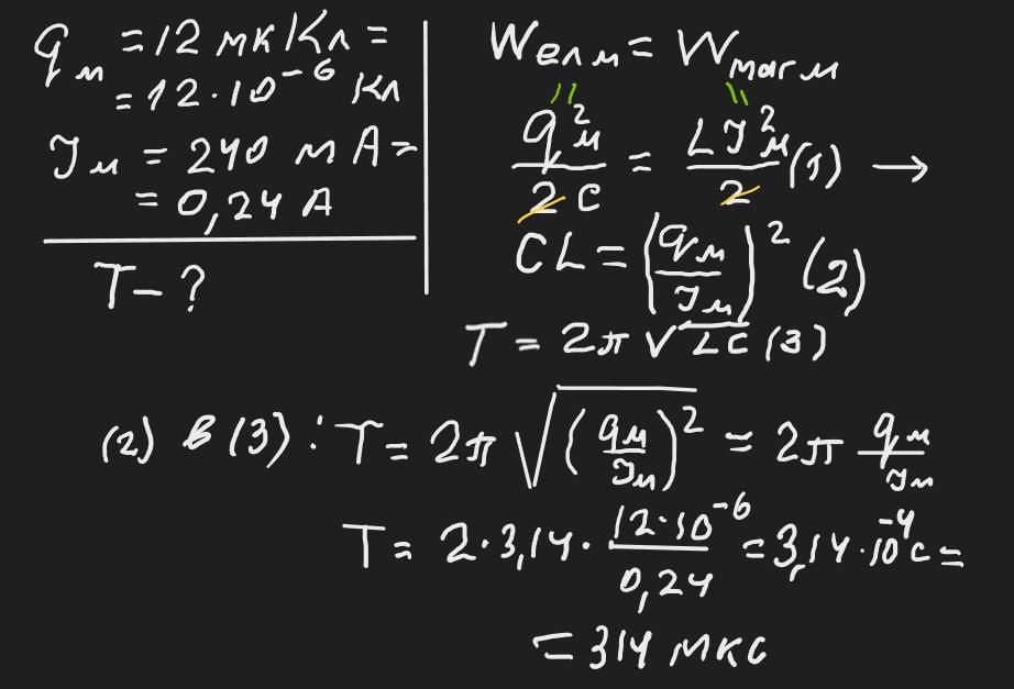 Пояснення: Застосуємо закон збереження енергії для коливального контуру (1), а потім формулу Томсона (3)