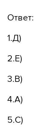 5. Жануарлардың тыныс алу мүшелерін сәйкестендіріңіз. 3 б Жануарлар 1. Балықтар 2. Құстар 3. Адам 4. Бакалар 5. Шыбын Жауабы: 1- 2- 3- 5- Тыныс алу мүшелерi А) Кеңірдек Ә) Желбезек Б) Өкпе, терi C) Ауа қапшықтары Д) Өкпе