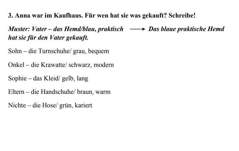 1.Die graue beqeme Turnschuhe hat sie für dem Vater gekauft.