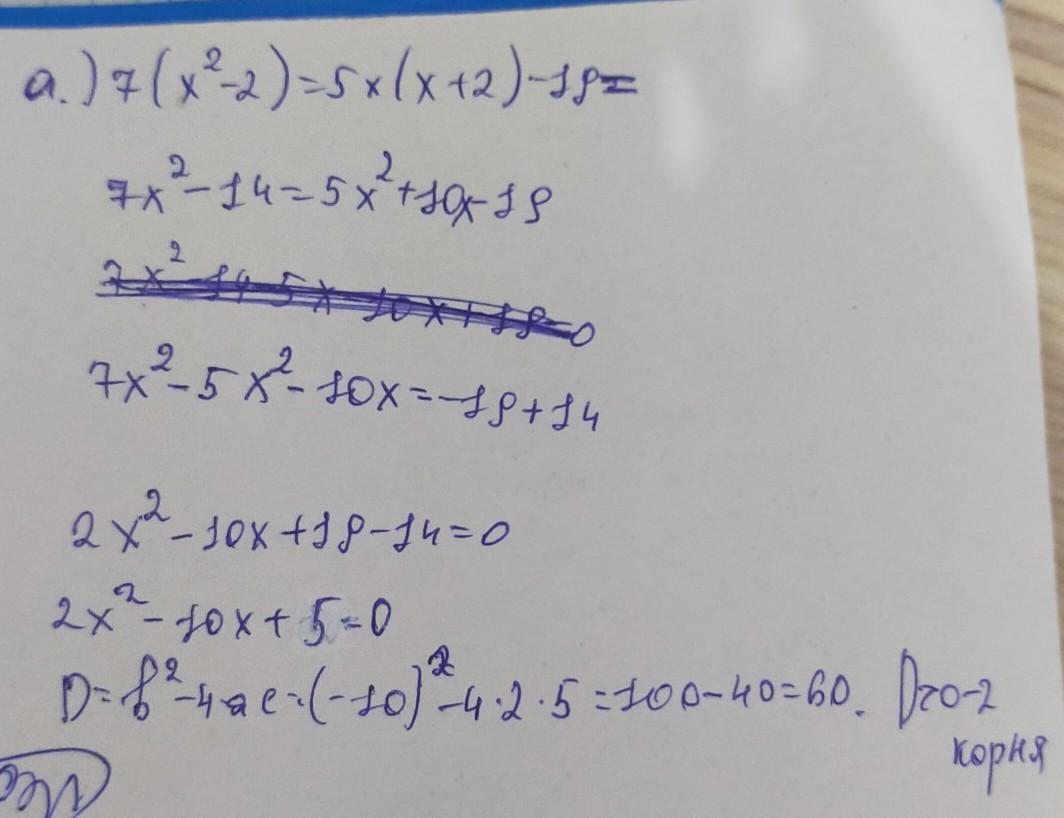 №3. Теңдеуді квадрат теңдеуге келтіріп, коэффициенттерін анықтаңыз. a) 7(x² - 2) = 5x(x + 2) - 19 -