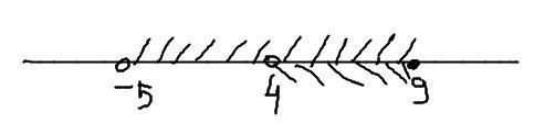 По методу интервалов получаем промежуток пересечения (4;9] (см. рисунок).