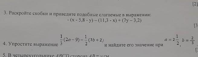 Пошаговое объяснение: 3. -х+5,8+у-11,3+х-2у-3,2=-8,7-у=-(8,7+у).