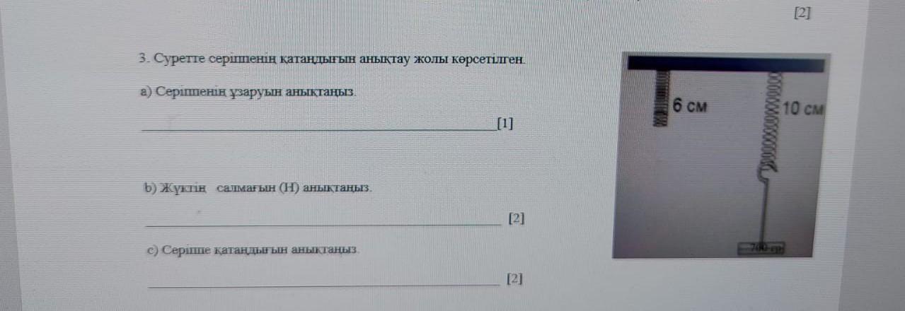 3. Суретте cepinпенің қатаңдығын аныктау жолы корсетілген. а) Серішенін ұзаруын анықтаңыз 6 CM 6) Жүктін салмағын (H) анықтаныз с) Серише катаңдығын аныктаны