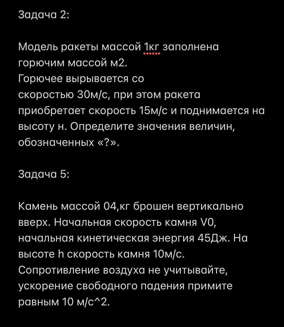 Камень массой 04,кг брошен вертикально вверх. Начальная скорость камня V0, начальная кинетическая энергия 45Дж. На высоте h скорость камня 10м/с. Сопротивление воздуха не учитывайте, ускорение свободного падения примите равным 10 м/с^2.