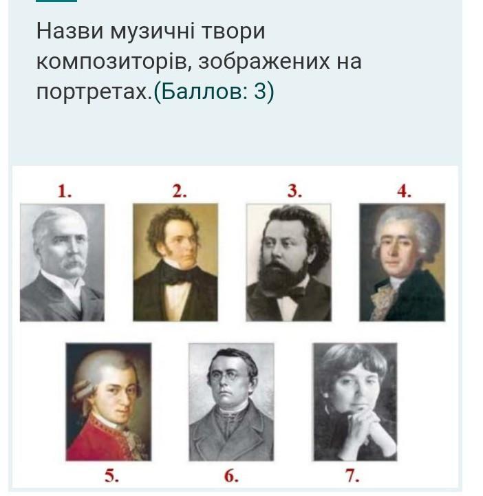 Ответ: 1. Микола Лисенко - опери "Наталка Полтавка", "Енеїда", "Тарас Бульба", кантата "Б'ють пороги", дитяча опера "Коза-дереза".
