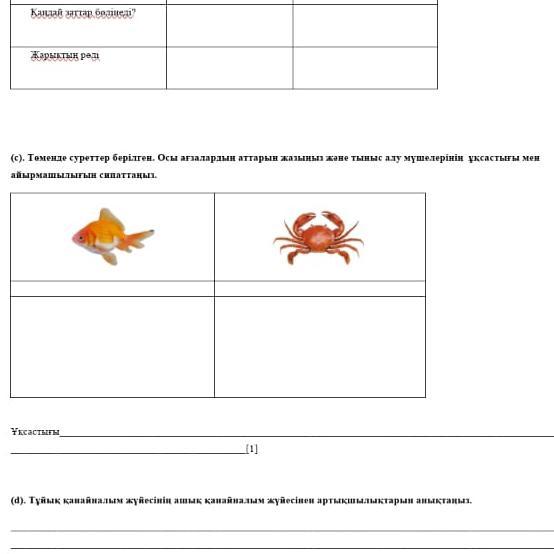 (c). Теменде суреттер берілген. Осы агзалардын аттарын жазыныз жане тыныс алу мушелерiнiн уксастығы мен