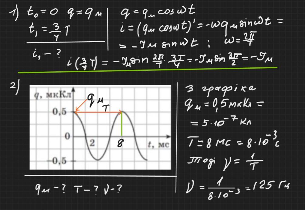 Відповідь:1) в ту мить, коли від початку коливань пройшло 3/4 періоду сила струму дорівнює максимальному значенню