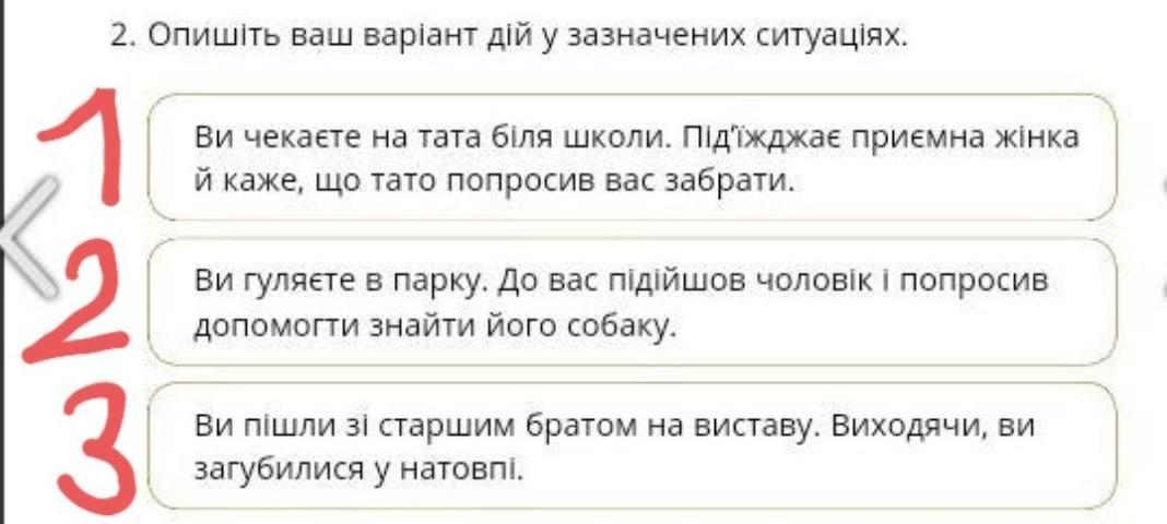 1. Я скажу що я не сідаю у не знайомі машини і не розмовляю з незнайомцями та відійшла б.