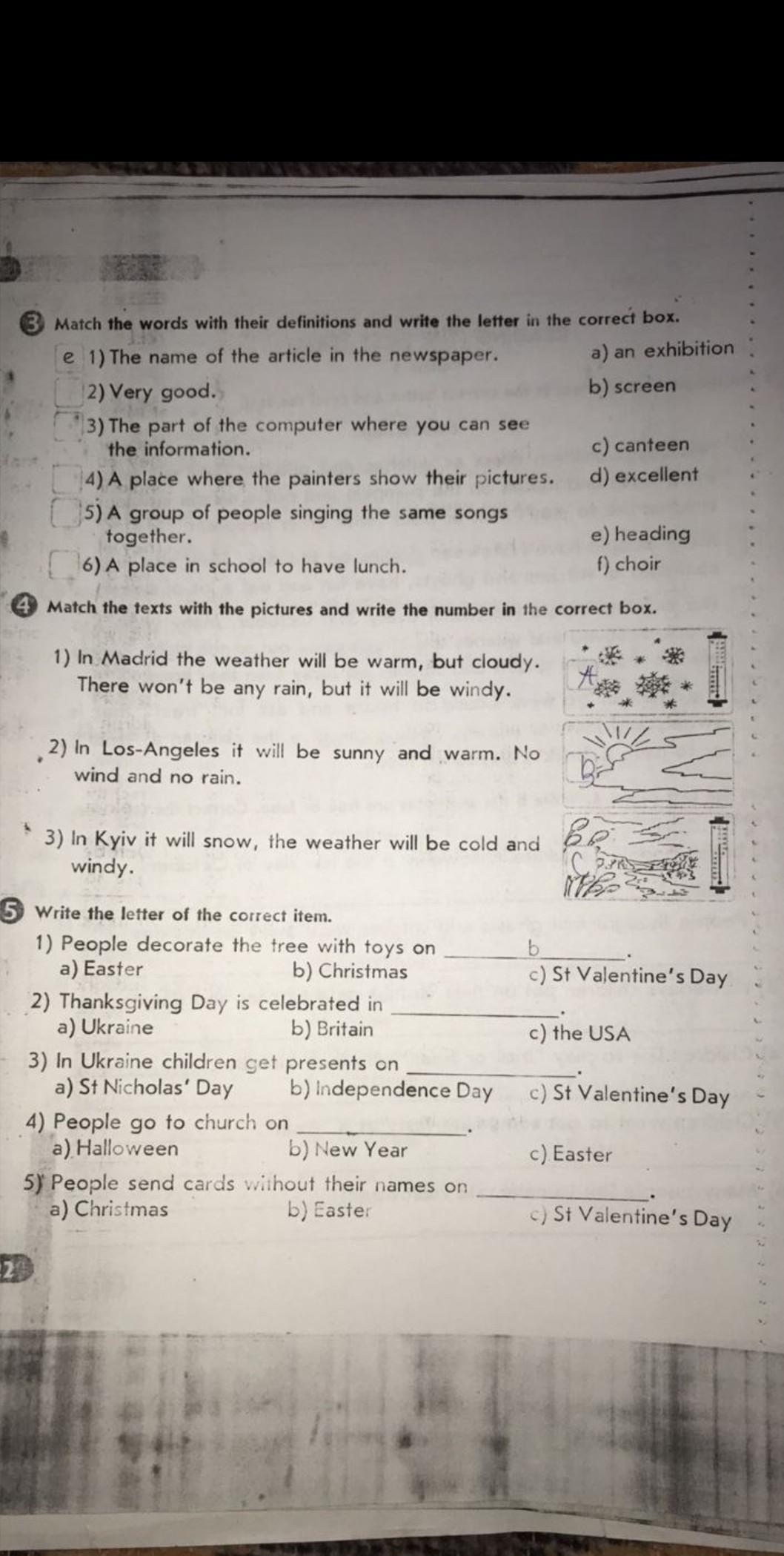 3. 1-e,2-d,3-b,4-a,5-f,6-c. 4. 1-c,2-b,3-a. 5. 1-b,2-c,3-a,4-c,5-c.