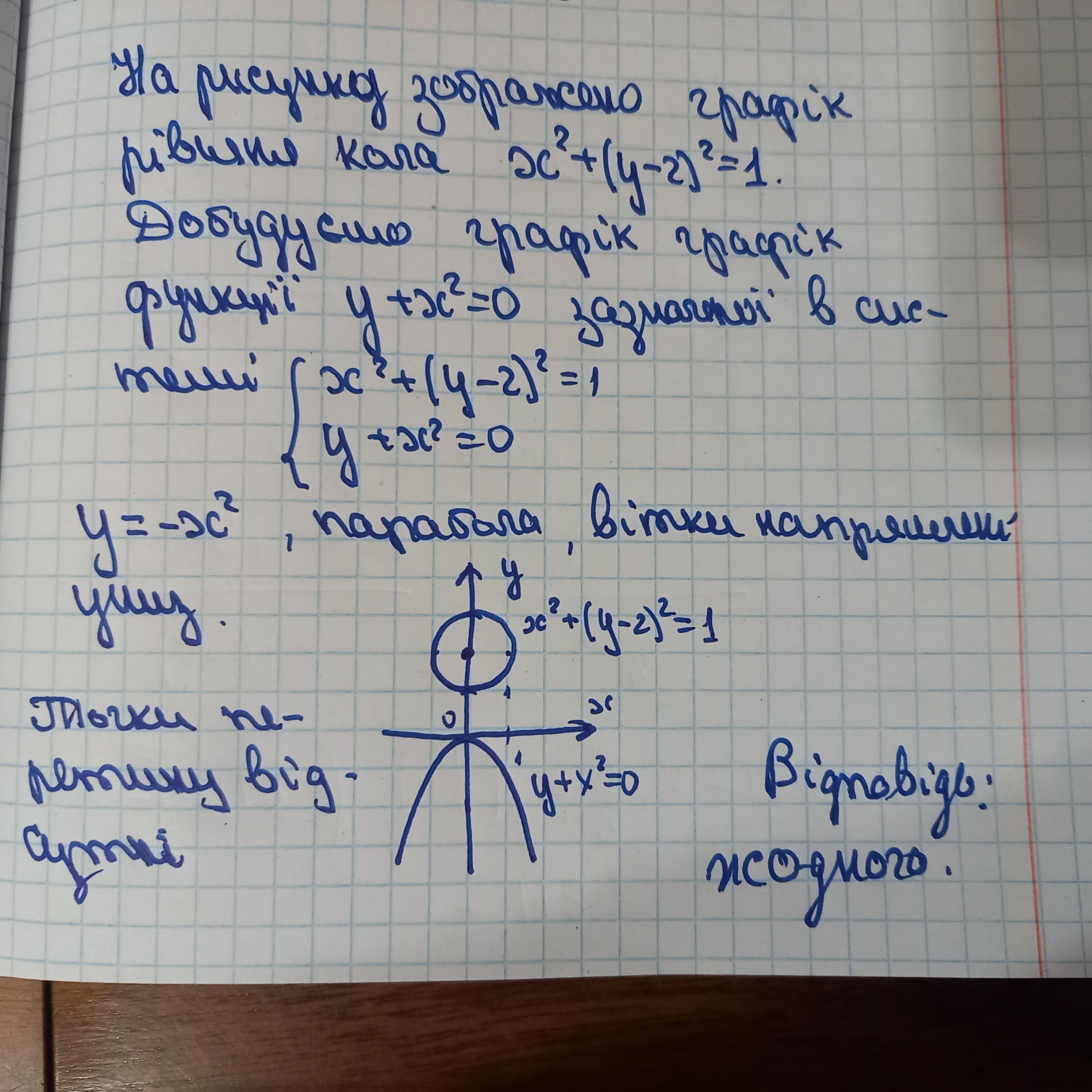 Графиком первого уравнения системы является окружность, расположенная выше оси Ох в I и II четвертях.