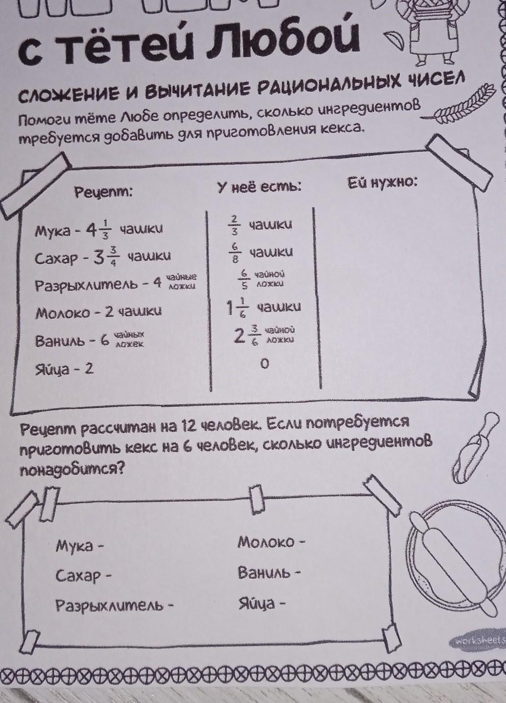 5) 6 - 2 3/6 = 5 6/6 - 2 3/6 = 3 3/6 = 3 1/2 (ложки) - ванилина нужно тете Любе