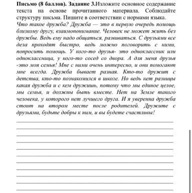 Письмо (8 баллов). Задание 3.Изложите основное содержание