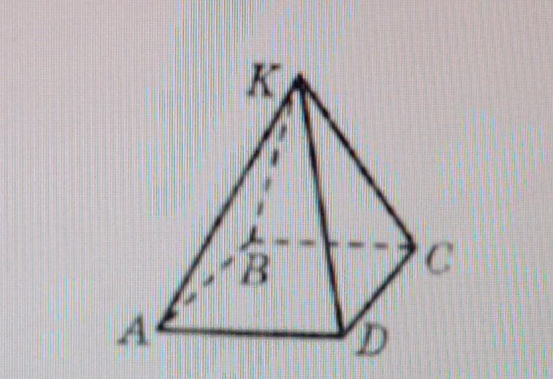 На рисунку зображено піраміду KABCD, основою якої є прямокутник з сторонами 4 ем і 6 см, а бічними гранями рівнобедрені трикутники з бічними сторонами завдовжки 8 ем. Чому дорівнюе сума довжин усiх ребер піраміди?