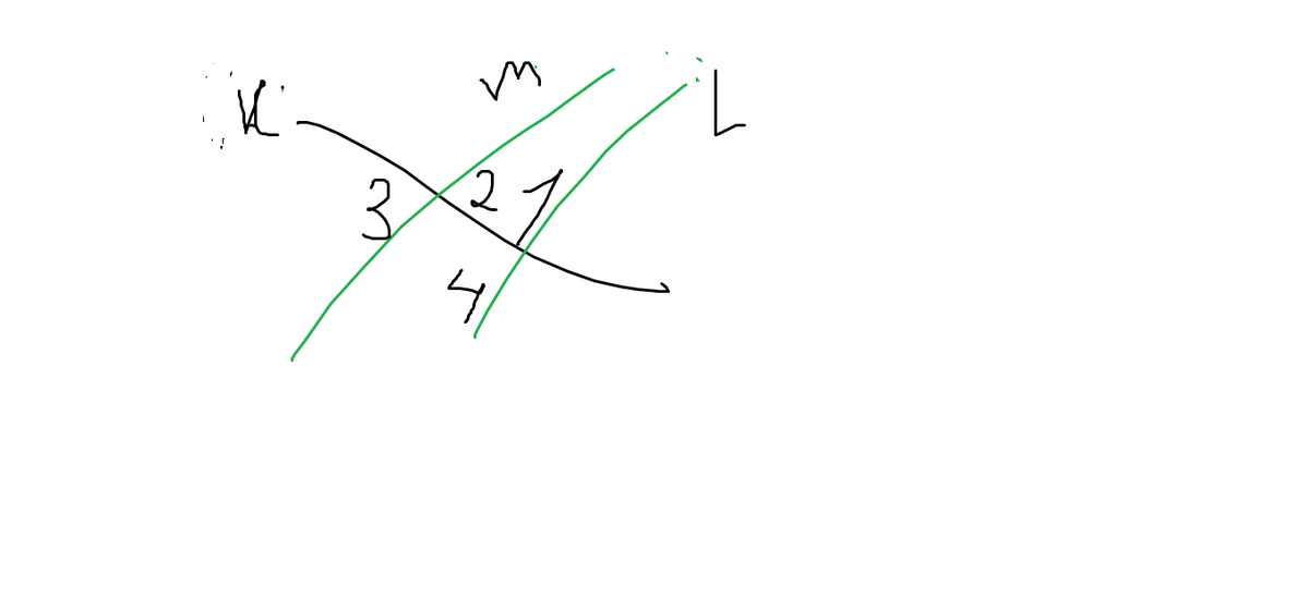 Помогите!Помогите с геометрией прямые m и l параллельны. Угол 1 в 2 раза больше угла 2.Вычислите градусные меры углов 3 и 4.
