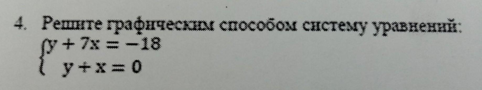 4. Решите графическим способом систему уравнений: (у +7x = -18 y+x = 0