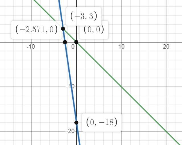 у +7x = -18 => при х=0 у= -18; при у=0 х= -18/7 = -2,57.