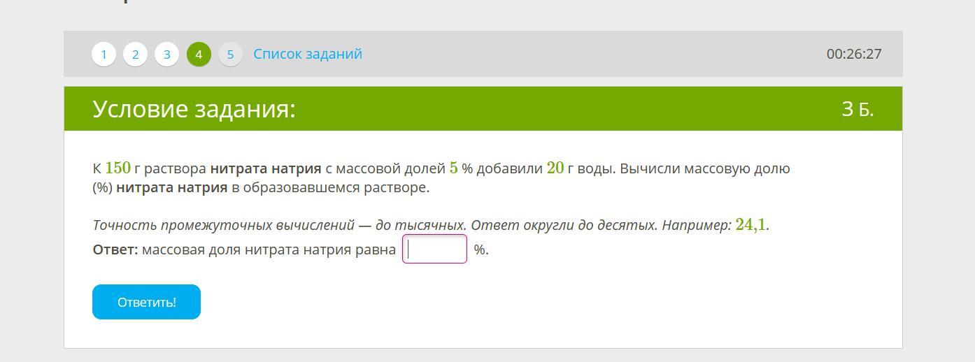 W(NaNO3) = 7,5 : 170 × 100% = 4,41 %
