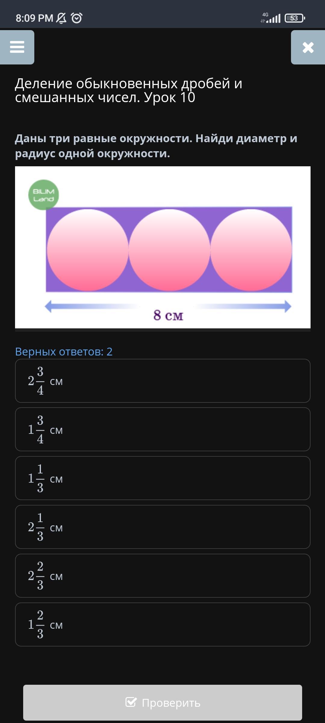 чтобы найти диаметр надо поделить 8 см на 3 части. Разделив полученный ответ на 2 мы получаем радиус то есть 1 1/3