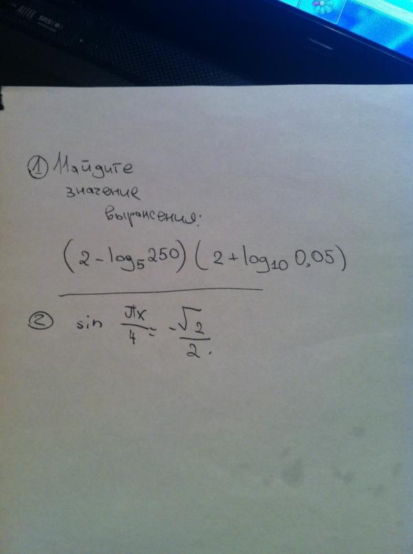 1) (log25 по онованию 5 - log250 по основанию 5)*( log100 по основанию 10 + log0,05 по основанию 10)=( log(1/10) по основанию 5)*(log5 по основанию 10)= -(log10 по основанию 5)/(log10 по основанию 5)= -ln10=-2,303