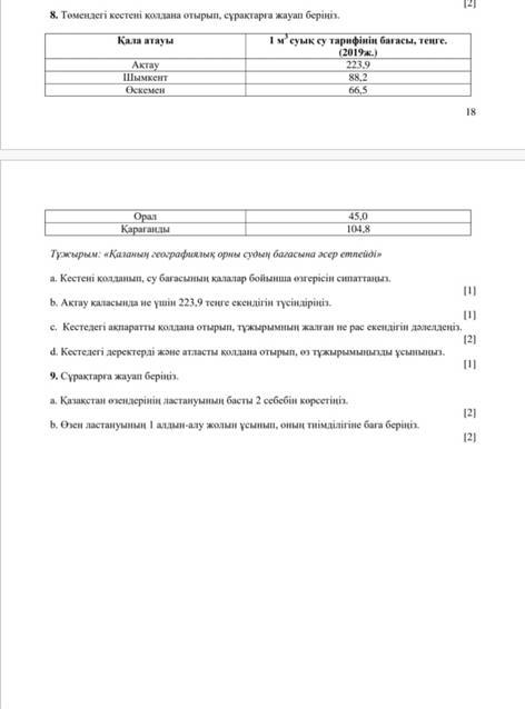 8. Төмендегі кестені колдана отырып, сұрақтарға жауап беріңіз.