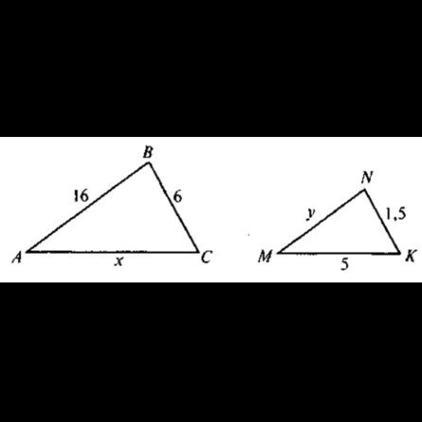 На рисунку ΔАВС ~ ΔMNK. Знайдіть х і у.