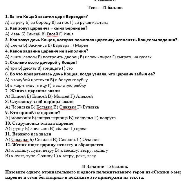 4. Какое задание царевич не выполнил?