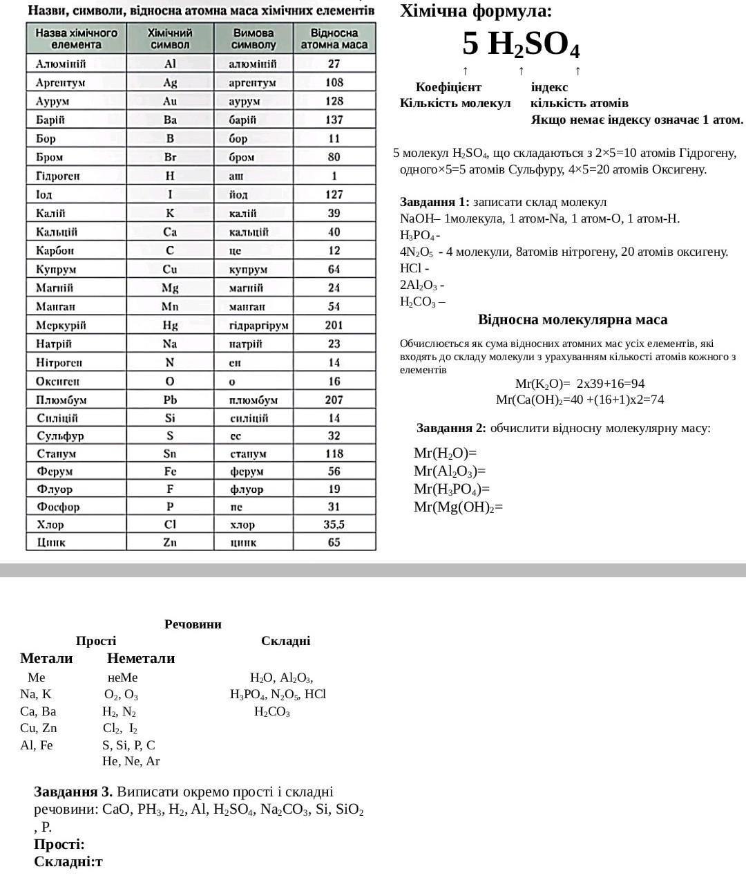 складні: CaO, PH3, H2SO4, Na2CO3, SiO2