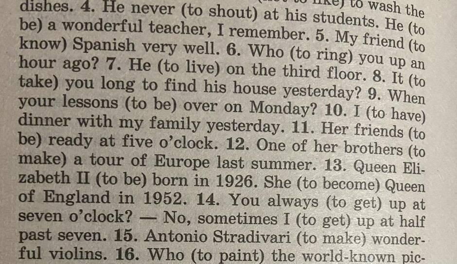 4. shouts, 5. knows, 6. rang, 7. lives, 8.took, 9.are, 10. had, 11.were, 12. made, 13. was, 14. get, 15. makes, 16. painted