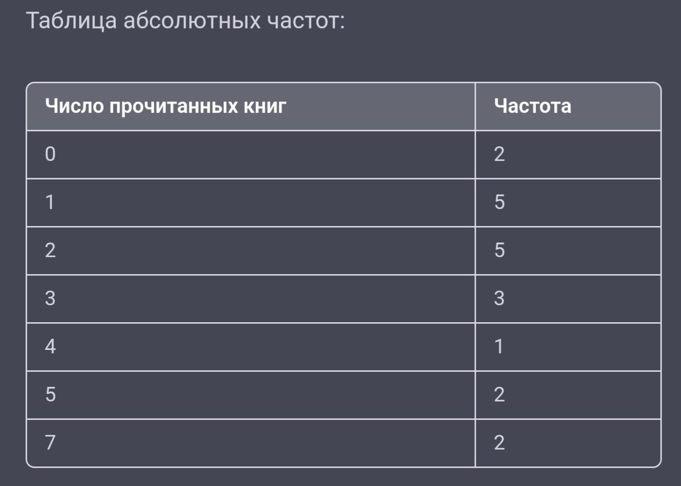 5. Социологи опросили 20 школьников, выясняя, сколько книг каждый из них прочел за прошедший