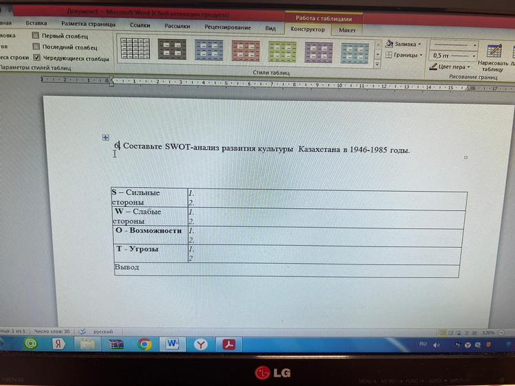 6 Составьте SWOT-анализ развития культуры Казахстана в 1946-1985 годы.