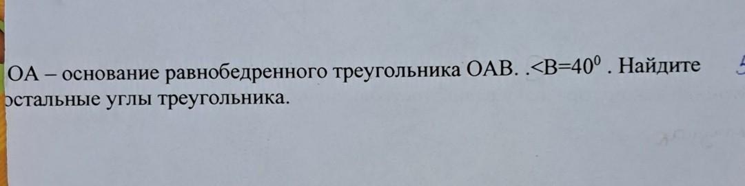 Пояснення: Это же так просто! Угол В лежит в вершине равнобедренного треугольника. Два остальных при основании равны. Получаем (180-40)/2=70.