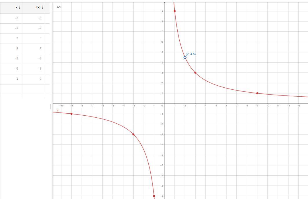 По итогу мы получили гиперболу с выколотой точкой ( 2 ; 4.5)