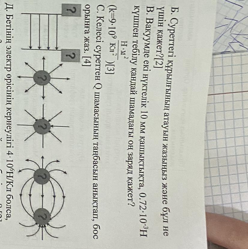 Вакумде екі нүктелі 10мм қашықтықта 0,71*10-3 дарежесі Н күшпен тебілу қандай шаманың оң заряды қажет