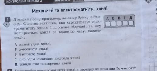 Срочно!!!!!!!! Позначте одну правильну, на вашу думку, Фізична величина, яка характеризує елек- тромагнітку хвалю і дорівнке відстані, на яку помириться книли за