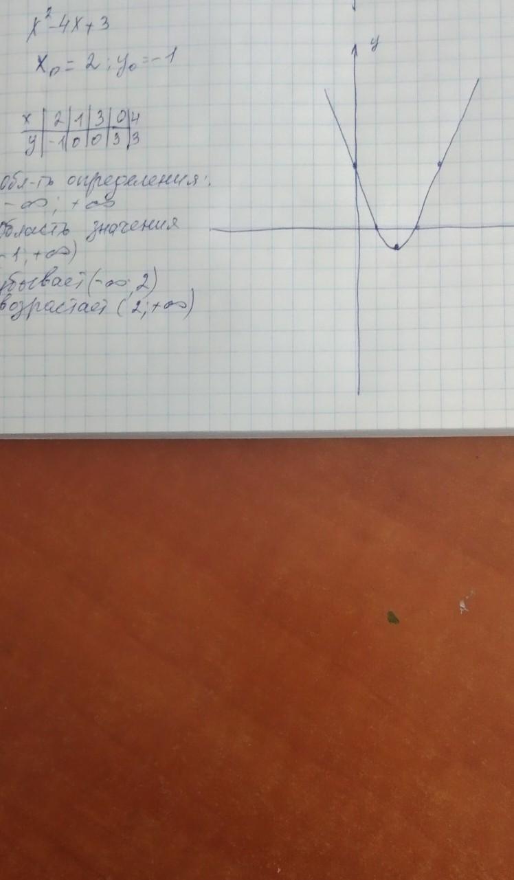 побудуйте графік функції у=х2-4х+3 . за графіком знайдіть 1 область значення функції 2 проміжок зростання функції