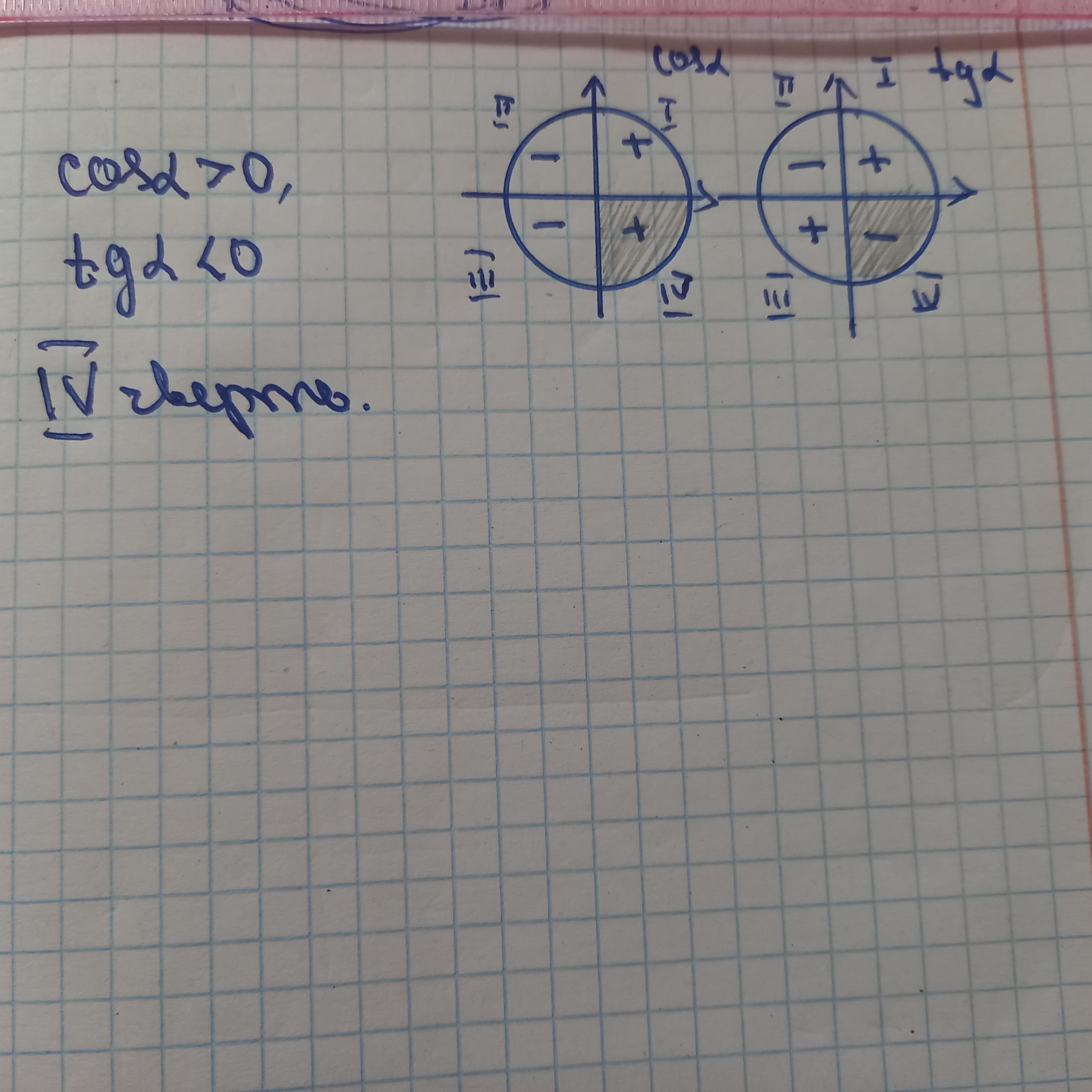 кутом якої чверті є кут альфа якщо cos a > 0 і tg a < 0