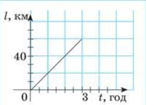 Для початку треба визначити ціну поділки для часу і для відстані. Для часу це 3 / 6 = 0,5, тобто на одну поділку припадає 0,5 год(30хв), для шляху 40 / 4 = 10, тобто на одну поділку припадає 10км. Тепер візьмемо будь яку точку на графіку і її координати, наприклад 40 км - 2 год і знайдемо швидкість за формулою: