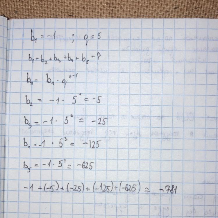 5. [3] Пусть bn есть геометрическая прогрессия, определенная b1 =-1 и q=5. Найдите сум b1 +b2 +b3 +b4 +bs