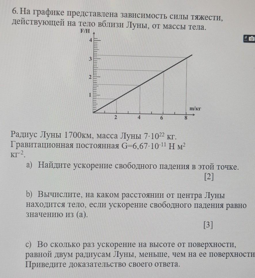 Радиус Луны 1700км, масса Луны 7•10^22 кг.