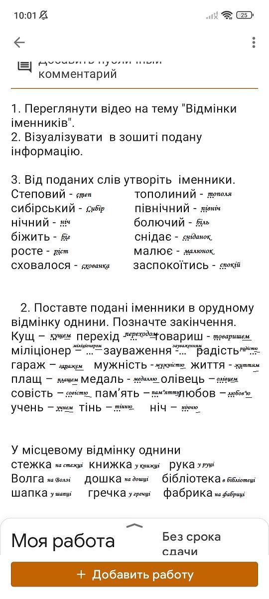 2.кущем переходом товаришем міліціонером зауваженням радістю гаражем мужністю життям плащем медаллю олівцем любовью учнем тінню ніччю