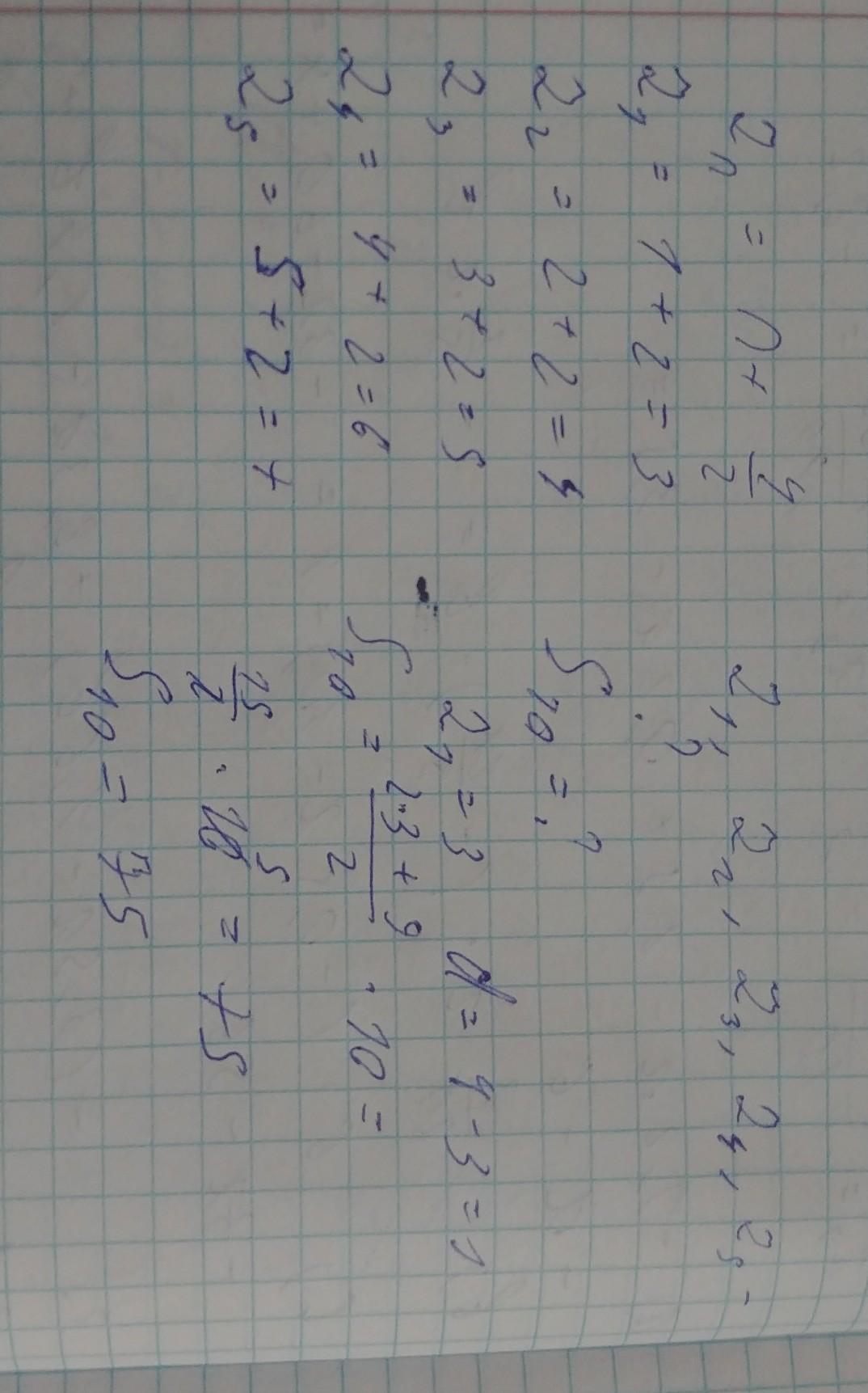 плиз можете помочь даю 80 б последовательность задана формулой zn=n+4/2 записать 5 первых членов последовательности и найти сумму 10 первых последовательности числел