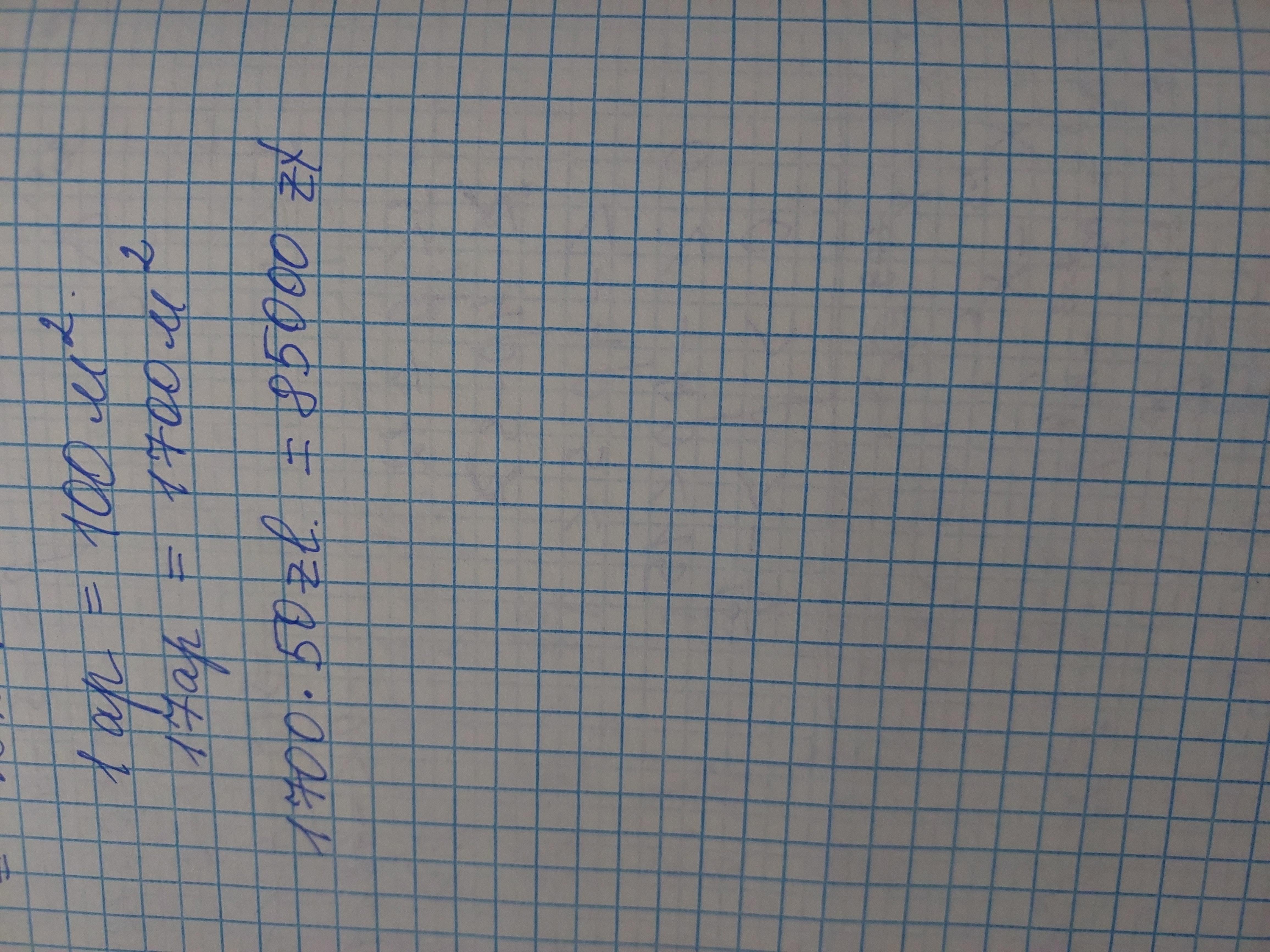 Cena 1 m² działki rekreacyjnej wynosi 50 zł. Ile kosztuje działka rekreacyjna o powierzchni 17 arów?