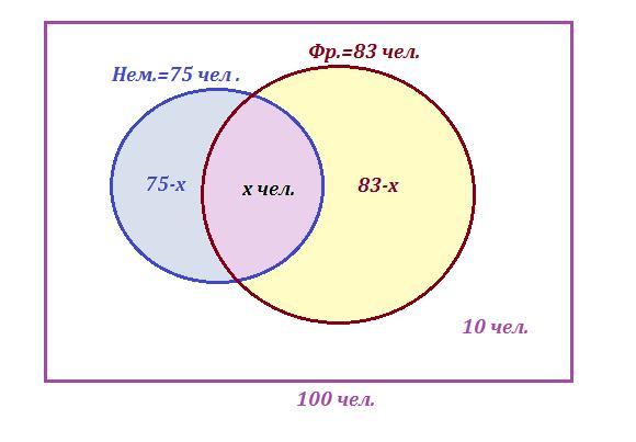 90 - 83 = 7 человек знают немецкий язык, но не знают французского