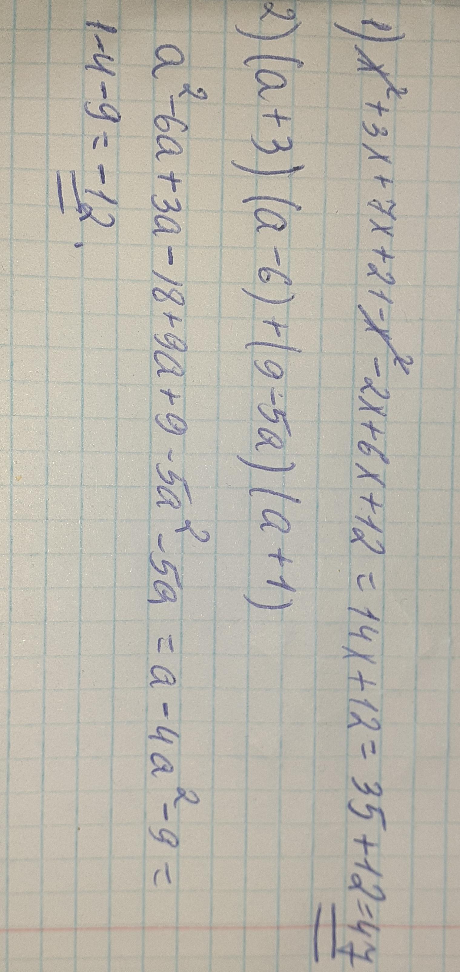 2) (a+3)(a-6)+(9-5a)(a+1), якщо а=1}..