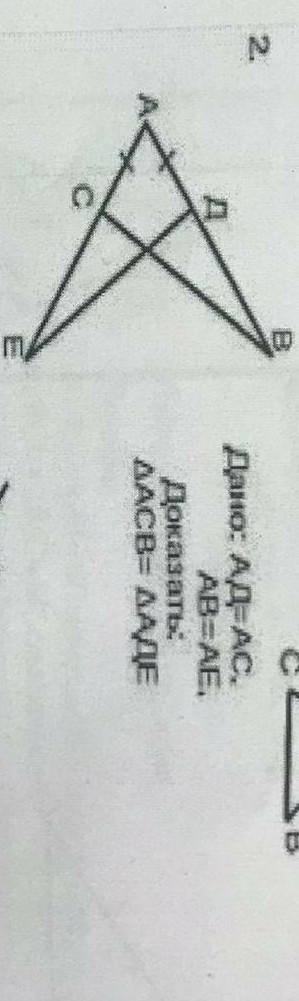 ∆ACB = ∆ADE по 1 признаку ( AD=AC и AB=AE по условию; ∠А - общий)