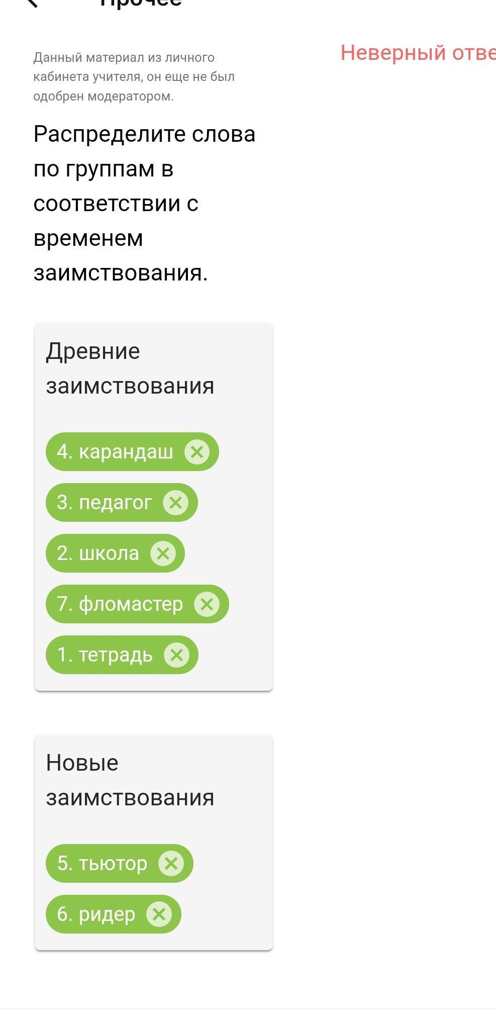Распределите слова потгруппам в соответствии с временем заимствования.